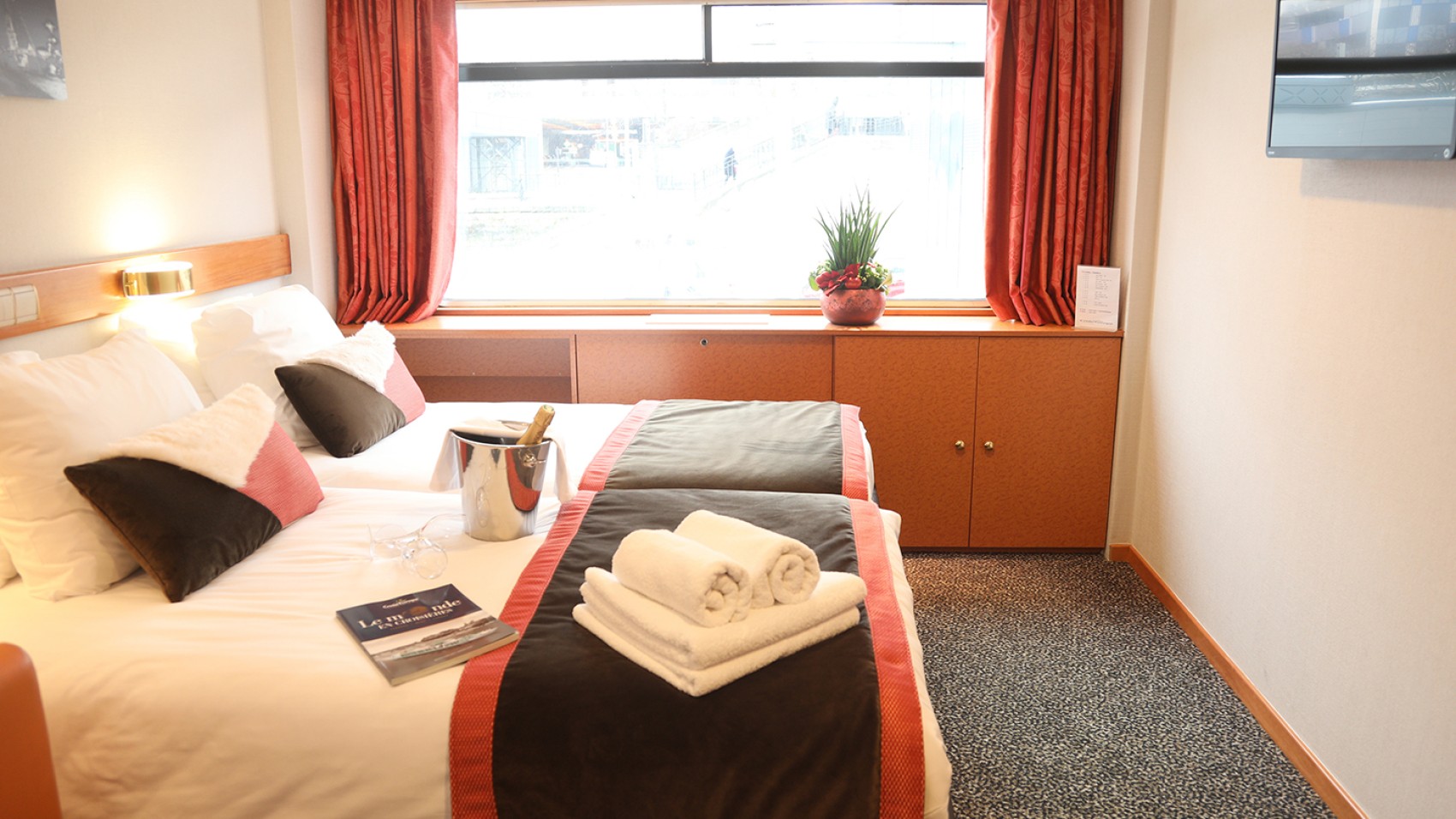The MS Seine Princess, a two deck river cruise ship, was built in 2002 and was recently renovated in 2011. This comfortable ship has a welcoming and refined atmosphere as well as superb service from the staff. The lounge is situated on the Upper Deck at the front of the ship to ensure you enjoy the best possible views of the passing scenery. The cruise manager and the ship’s crew arrange a comprehensive programme of activities throughout the day. The large sundeck is ideal to relax in the sun, or to admire the scenic countryside.