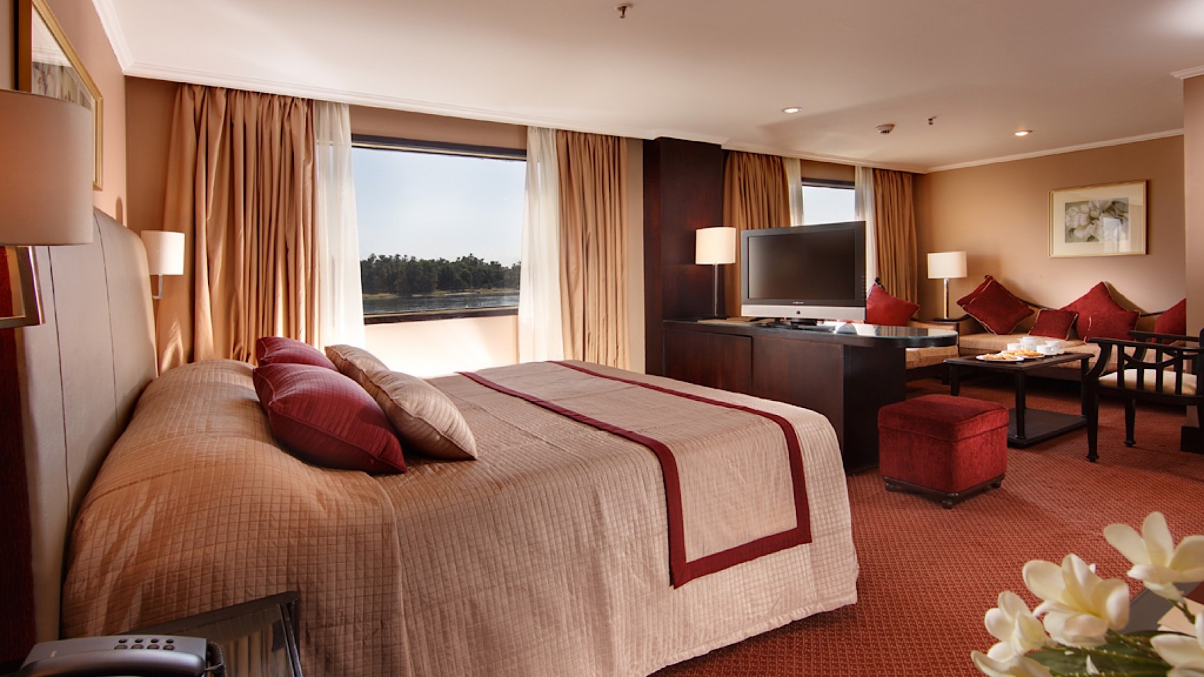 The Five Star Nile Monarch is a small traditional Nile cruiser, which promises guests an unforgettable journey through the diverse landscape. Boarding this floating cruiser you will experience the ancient wonders and sites of Egypt.